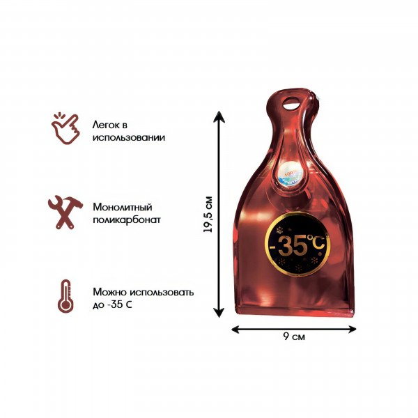 • Скребок изготовлен из прочного поликарбоната и может эксплуатироваться при экстремально низких температурах (до -35 С)