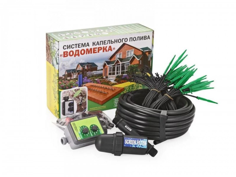 С контроллером, программирование интервала и длительности подачи воды. Рассчитана на две грядки.
