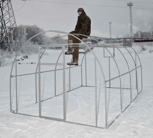 Теплица для дачи "Новатор 5" Параметры теплицы: Ширина - 3м Высота - 2м Длина - от 4м Каркас из стальной профильной трубы с антикоррозийной окраской. Теплица оснащена вставками в крышу, что позволяет проветрить, а в зимний период позволяет избежать снеговой нагрузки. |